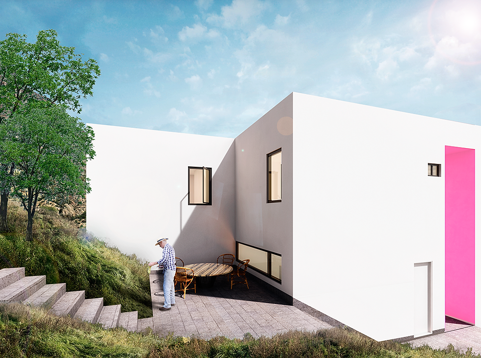 Un Terreno estrecho ascendente y composición pétrea rocosa, se convierte de condicionante a una característica principal que define el emplazamiento del programa arquitectónico en tres niveles: estacionamiento, área social y área privada.